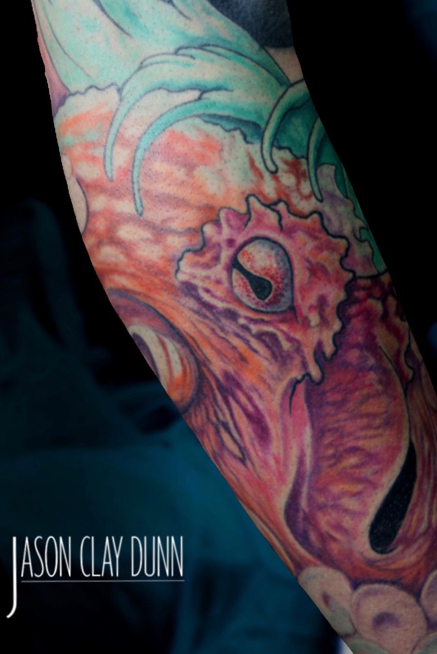 The official jason clay dunn store filter; Jason clay dunn is a professional fine artist, tattoo artist and television personality from ontario, california. Tattoo alchemy logo tee shirt. It starts off with a custom armored koi fish and a giant oni mask to. After getting the outline done, the canvas quit and dunn was forced to start the tattoo over from scratch.